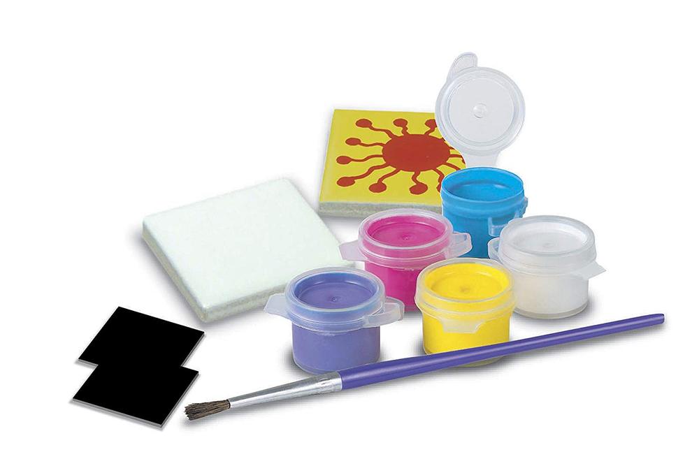 Explore the fun of arts and crafts with the 4M Magnetic Mini Tile Art set. Create works of art, attach them to tiles and apply magnets to hang them on any metal surface. This magnetic tile art set includes tiles, magnets, a paint strip and brush. Tiles make ideal fridge art, or can be safely attached to a locker door for a unique personal touch. Each tile measures 2-inches by 2-inches, making them attractive gifts for friends or family.