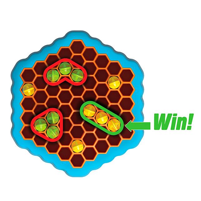 - Take turns dropping arrows into the honeycomb grid