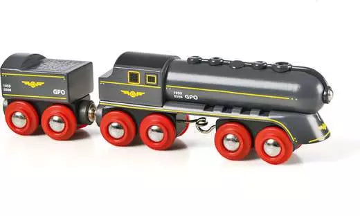 The amazing speedy bullet train is steaming and ready for take-off. With its classic design and retro look, this educational wooden toy will end up number 1 in the children’s room. It has got no less than twelve wheels and is compatible with all wooden BRIO railway sets. This toy also helps improve children’s concentration and fine motor skills. Includes 1x Train Engine, 1x Coal tender. The item measures 18.9 x 3.4 x 5cm. Crafted using FSC® (FSC-C111262) sourced European beech wood and high-quality plastics the BRIO World railway range is suitable for ages 3 Years and up and make ideal gifts for boys and great gifts for girls.