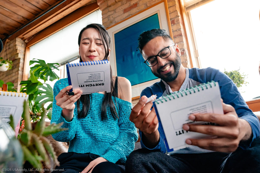 The award-winning party game Telestrations will get your family and friends laughing as they draw what they see, then guess what they saw for hours of hilarious miscommunication. All players simultaneously sketch, pass and guess while revealing laugh out loud and unpredictable outcomes!