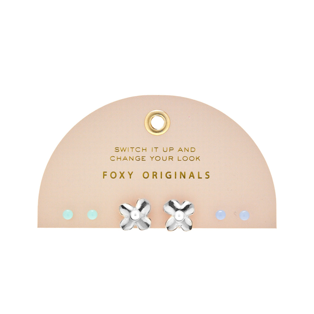 Let your style blossom with the Flower Mix & Match Earring Set. 3 pairs of interchangeable studs let you customize your aesthetic. Elegant and charming, this set also makes a lovely gift. Available in Gold and Silver.