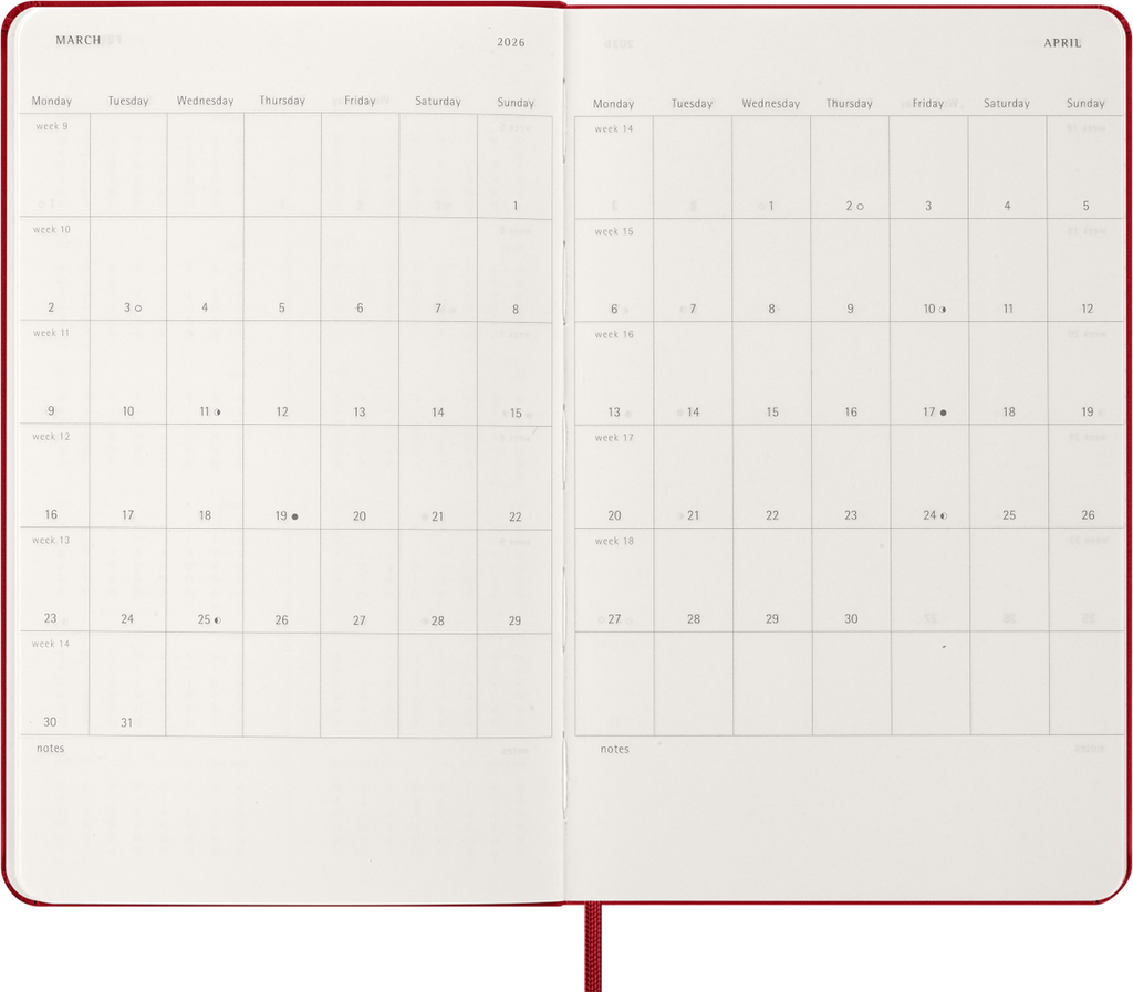 Moleskin: Classic Weekly Diary/Planner 2026 Large Hardcover Scarlett Red