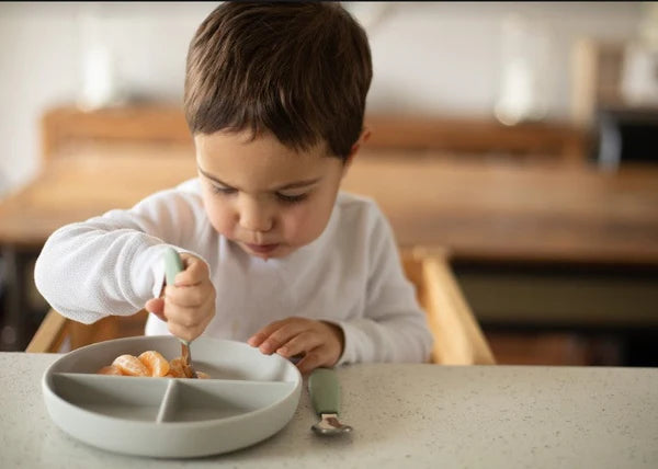 Self-feeding is simple and safe for little ones with noüka’s Toddler Cutlery Set. This set includes a fork and spoon with smooth edge design for safety. The soft silicone handle allows for a comfortable grip as they practice self-feeding. Made from food grade silicone and stainless steel that is dishwasher safe, our dinnerware set is easy to clean, durable, and long-lasting. The Toddler Cutlery Set is available in an array of calming, modern colors for your little one.