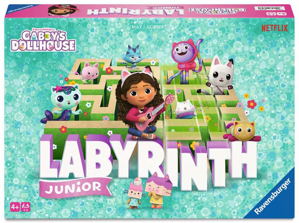 In this junior edition of the internationally known classic game “The Crazy Labyrinth”, children aged 4 and up search for the popular characters from the animated series Gabby’s Dollhouse. By skillfully and foresightfully moving the cards on the game board, the players create new paths that lead to the sought-after series heroes. Whoever keeps an overview quickly reaches their goal and secures victory.