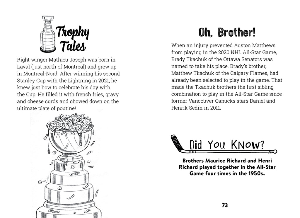 Find out the answers to these questions and so many more, in this latest collection of hockey trivia for kids! This appealing digest is also loaded with illustrations and photos — a perfect immersive read for young students of Canada’s greatest game!