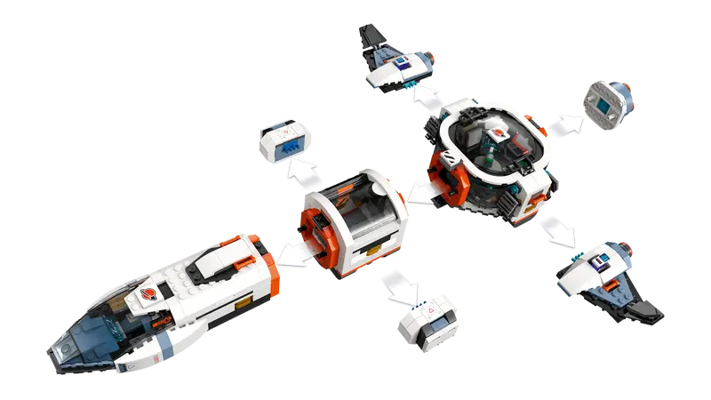 - Modular space exploration toy – Kids reconfigure the spaceship model to create a space shuttle and a land base with a lab, medical bay and kitchen