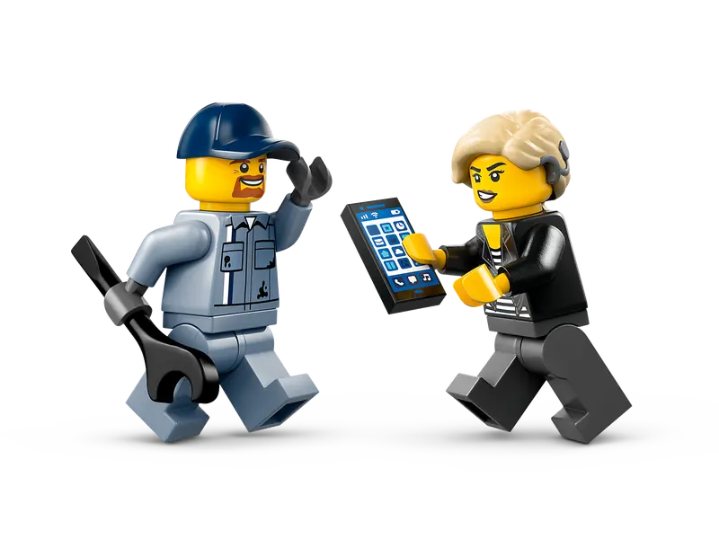 - LEGO® minifigure accessories – This toy vehicle recovery playset comes with accessories for pretend play, including a toy wrench and phone