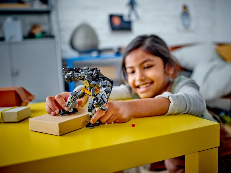 - Collectible robot toy – Includes a buildable Batman™ mech with a Batarang™, stud launcher and jetpack, plus a Batman minifigure with a fabric cape and Batarang, which can be stored on the mech’s arm