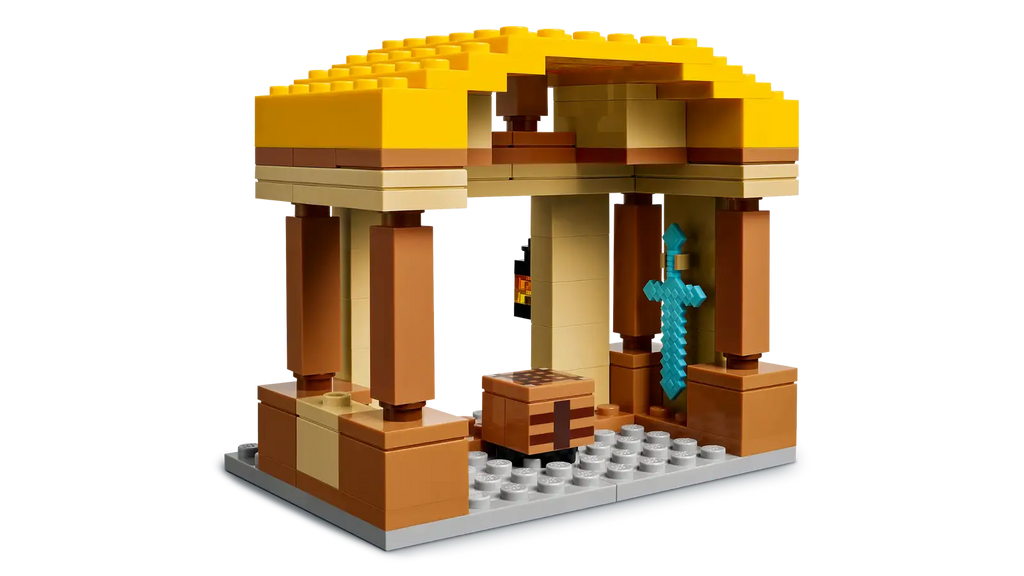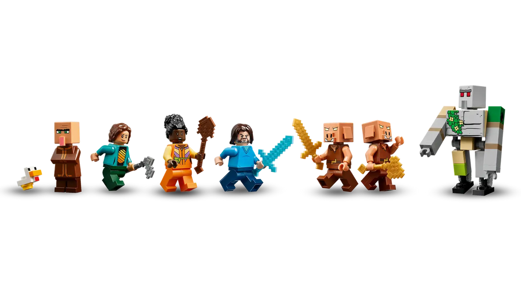 - Video game LEGO® set – When piglins launch missiles from their ghast balloon, causing the fountain to ‘explode’, kids must defend the villagers and Steve's fried chicken restaurant and crafting shack