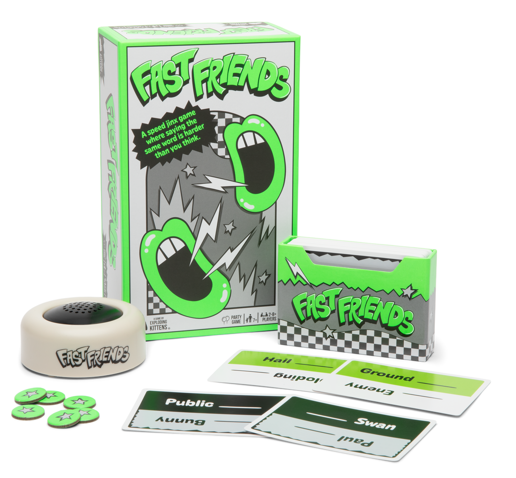 Get ready for Fast Friends, the speed jinx guessing game where saying the same word is harder than you think. Players race to match minds before the timer buzzes, hoping to shout the same phrase at the same time. Every round brings laughter, surprises, and friendly chaos as players lose Life Tokens and new pairs take their turn. Simple to learn, fast to play, and endlessly replayable, Fast Friends is the ultimate family game for family game night, parties, and holidays.