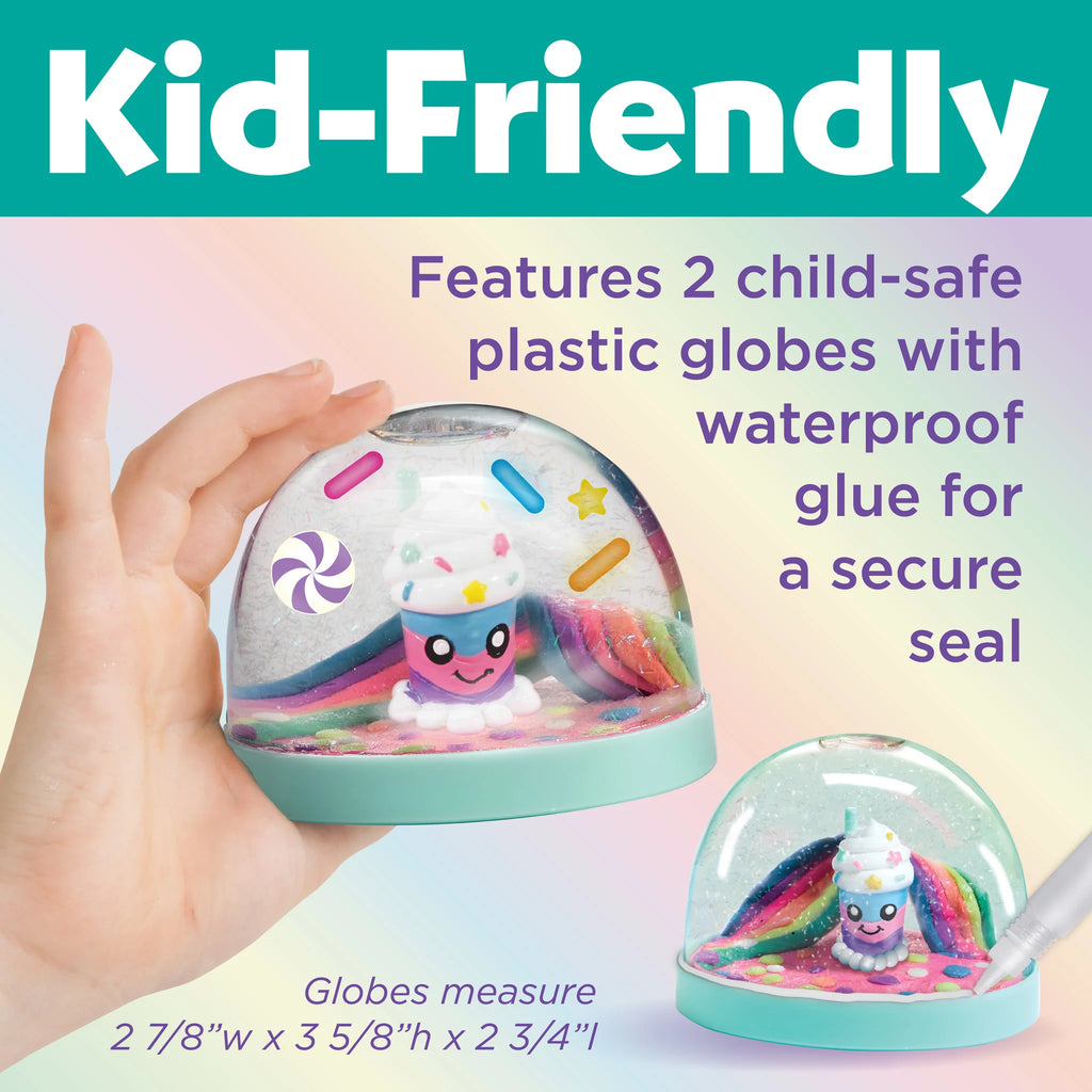 Create a whimsical world of sugar and sparkle with the Make Your Own Water Globes Sweet Treats Kit! This complete DIY water globe kit for kids includes everything needed to design 2 colorful, candy-themed kids snow globes.