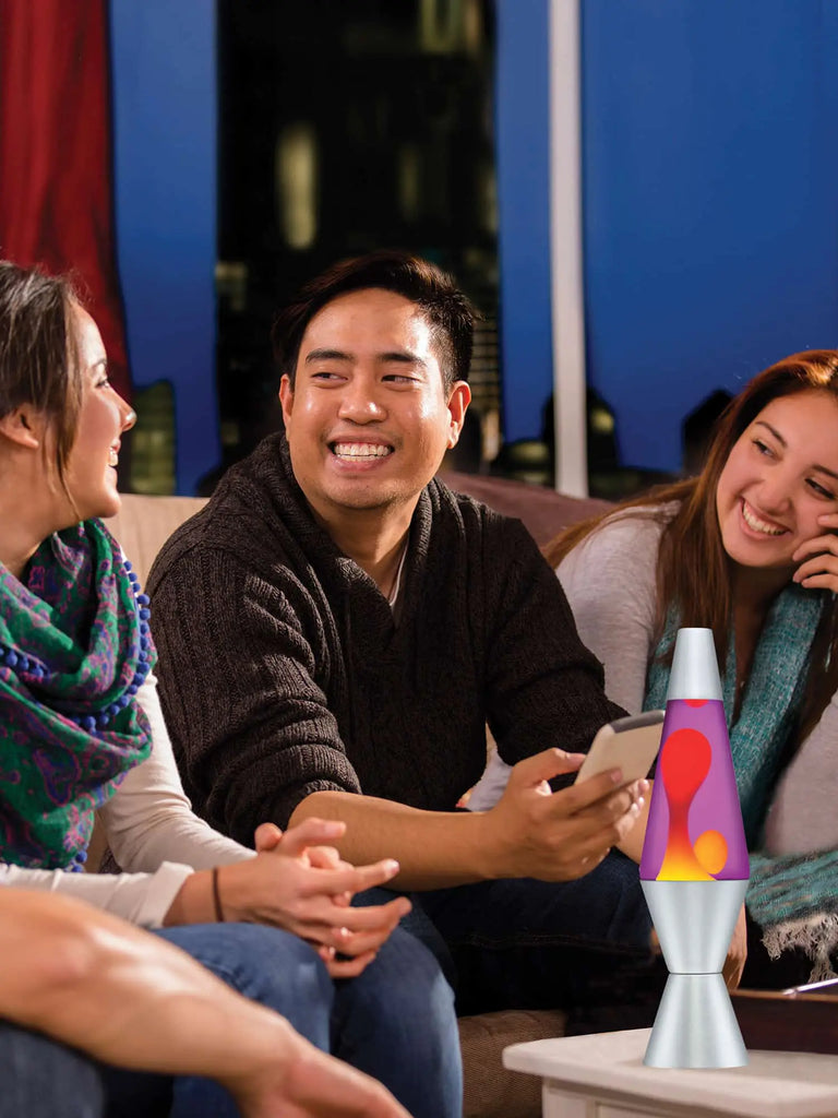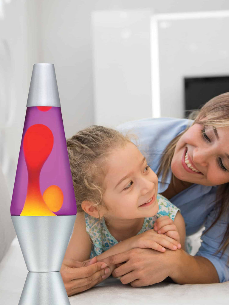 Watch the mesmerizing motion of different sized wax blobs as they collide, split apart and ooze their way up and around the glass globe of this peaceful LAVA® lamp. A hand-spun base and cap make this lamp truly unique. Enjoy the relaxing motion of this fun-sized version of the timeless LAVA® lamp.