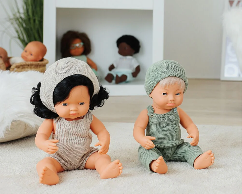 The new collection of knitted clothing for 38cm Miniland Dolls is made of recycled materials. All of them are in natural shades and have a handmade look. Beautiful and thoughtful accessories for your baby doll.
