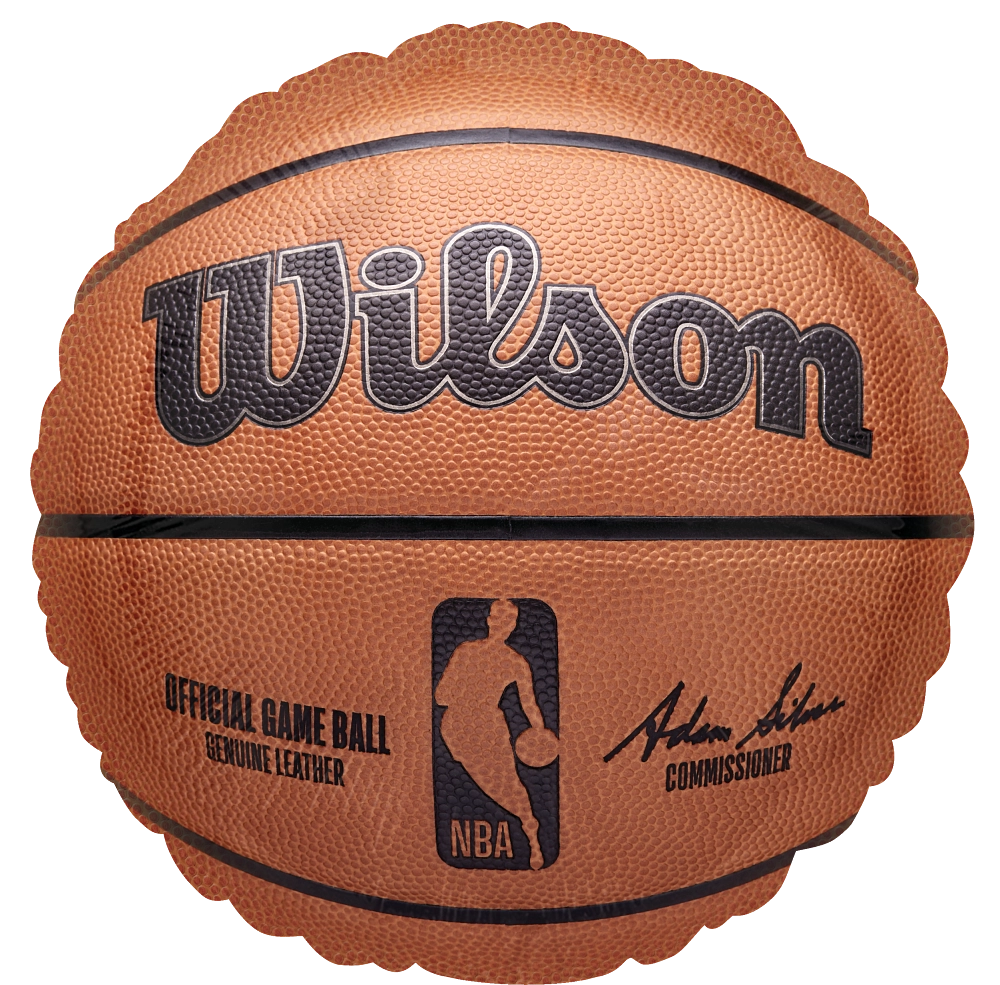 - Featuring a NBA basketball net backboard with two Wilson basketballs, a red star and a blue star balloons.
