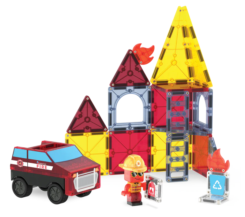 Embark on exciting firefighting missions with MAGNA-TILES Fire Rescue! Send the fire chief car and figure into action at top speed with the Pullback Chassis. Enhance the action with realistic Fire Tiles to knock down and ladders to climb, reaching every blaze in the nick of time. Designed to spark creativity and encourage imaginative play, MAGNA-TILES Fire Rescue complements the Fire Station Set for even more dramatic rescue operations. Together, the Fire Rescue and Fire Station Sets turn your MAGNA-TILES city into a hub of teamwork, excitement, and heroism. Who’s ready to answer the call and save the day?