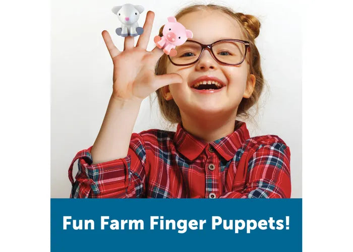- 5 ANIMAL FINGER PUPPETS: MEET 5 adorable farm animal finger puppets, including a cow, pig, chicken, and more