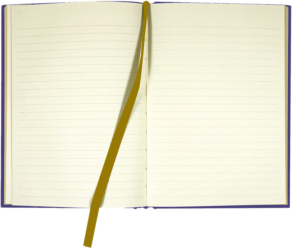A ribbon bookmark keeps your place.