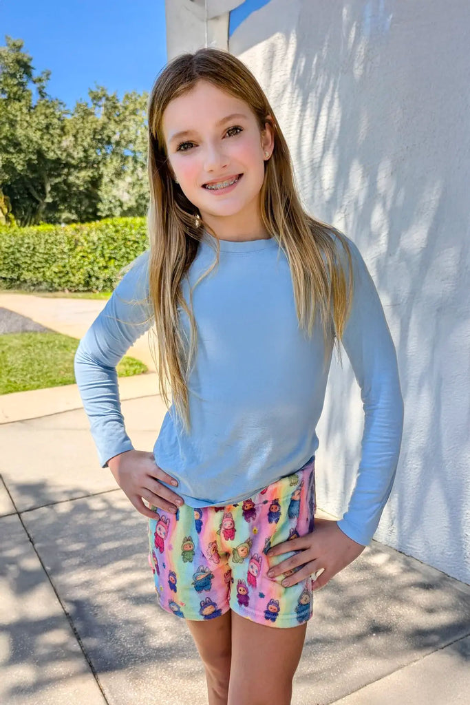 Introducing the ultimate pair in comfort and style: our luxurious plush loungewear shorts, perfect for every girl's wardrobe. These Fuzzy Doll printed girls' shorts feature vibrant multicolor creatures, making them the go-to choice for lounging at home, traveling, or hanging out with friends. Crafted from 100% polyester and brushed on both sides, these girls' pajama shorts offer unparalleled coziness, ensuring they feel just as soft on the inside as they do on the outside.