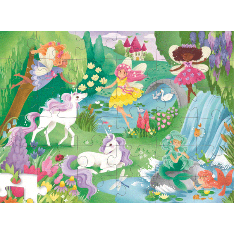 Kids can build a beautiful fairy scene with this 36 piece Crocodile Creek puzzle. They'll be enchanted by fairies, mermaids and unicorns that will also delight their families if any extra help is needed.