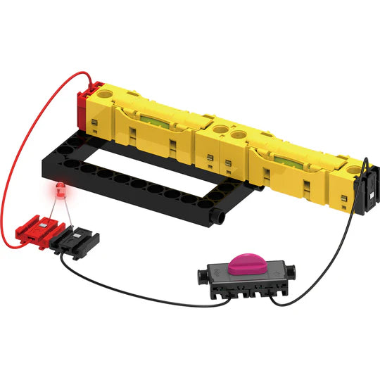 Explore the science of electricity in a fun, hands-on way by building 20 electric circuits and motorized devices. Conduct experiments to learn about many electrical components and physical science principles firsthand. From circuit to circuit, you can see for yourself the different effects the electric current has on the motor and the LED light. The innovative building system allows you to easily piece together the circuits by sliding the connectors together, and then easily sliding them apart when it’s time to build the next circuit. After you have learned the basics of circuits, you can build five fun, motorized models that perform cool functions!