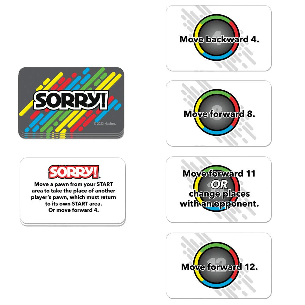 CLASSIC SORRY! GAMEPLAY: Just as in the full-size Sorry! game, players compete in a race to home. They can send each other's pawns back to the starting point in this game of "sweet revenge"